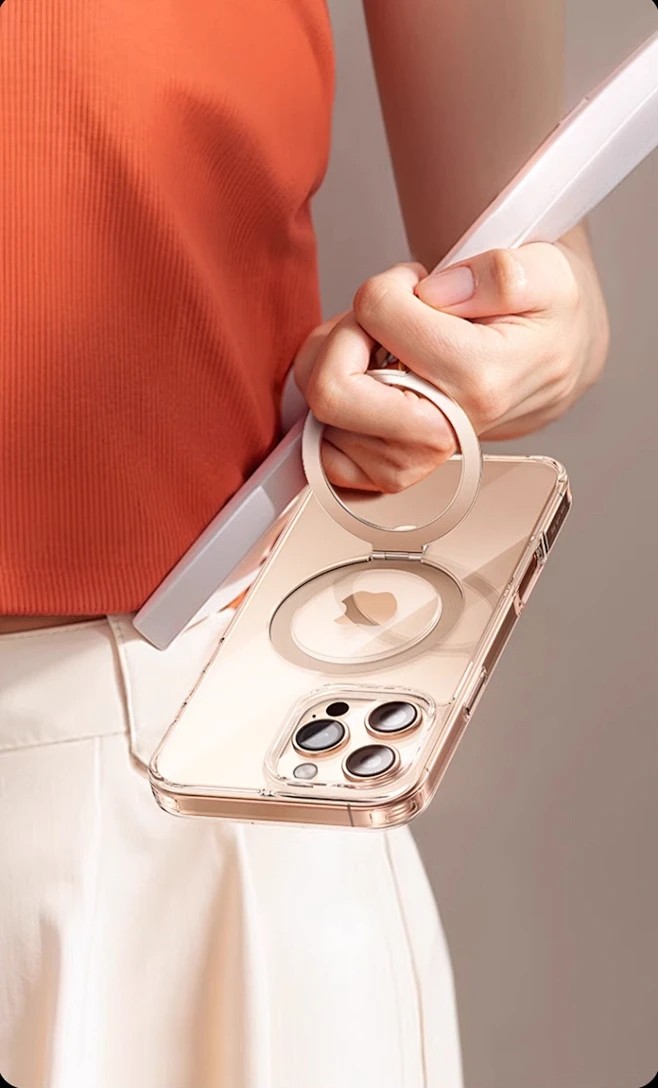 This transparent phone case features a built-in magnetic ring, providing easy compatibility with magnetic accessories like car mounts and wireless chargers. The integrated magnetic ring ensures a secure attachment while keeping your phone slim and sleek.
